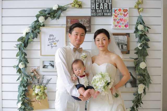 7ヶ月のお子さまと一緒に挙式を行いました。