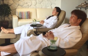 マッサージのあとは、しばらくオーシャンビューの特等席でレモンウオーター、