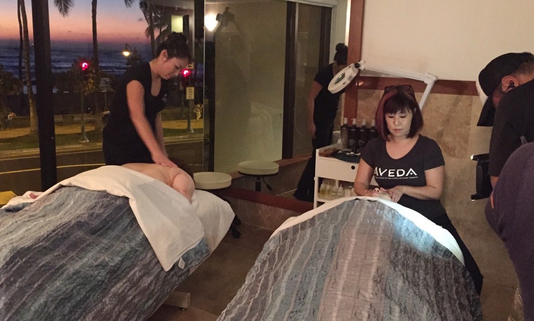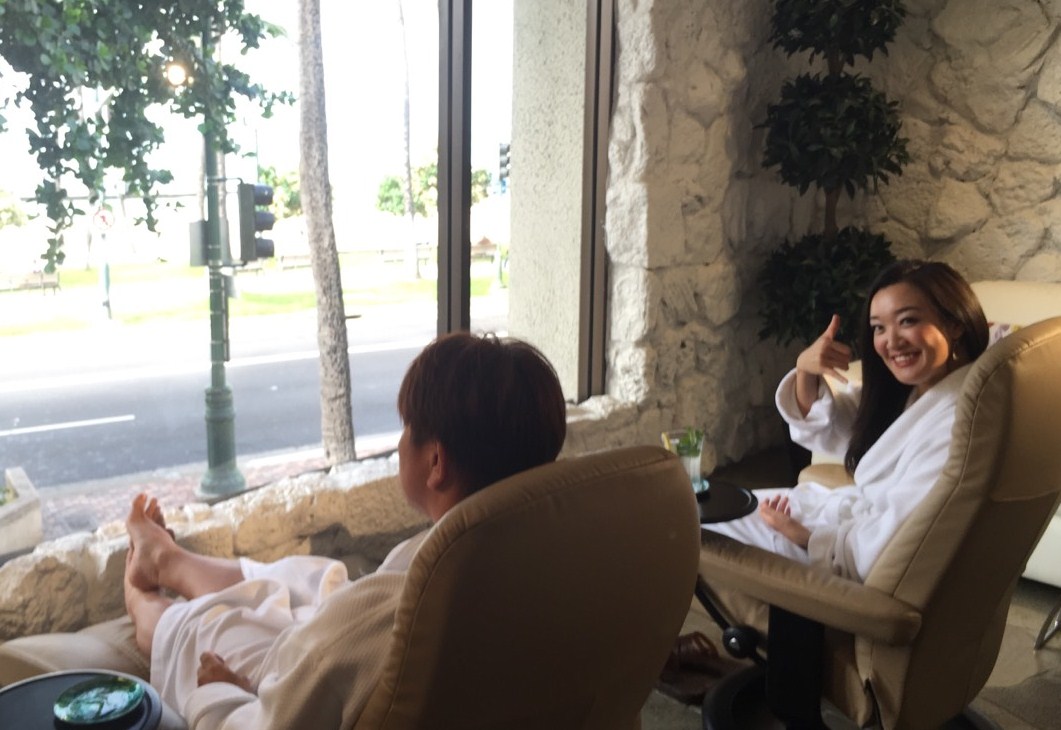 はるかさんがフェイシャル(右)はるなさんがマッサージ(左)を受けられ、