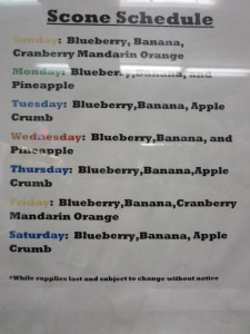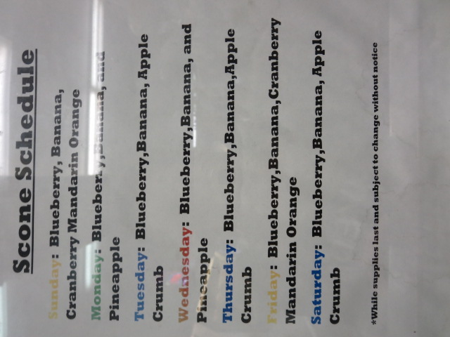 曜日により作っているスコーンの種類が異なりますので、下の写真でご確認くださいね。
