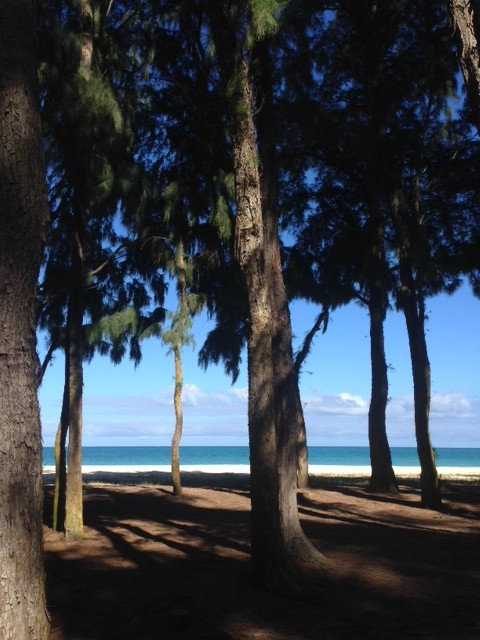 ビーチの手前は背の高い木たちが。日陰がまた風が吹き抜けて気持ちが良いです。