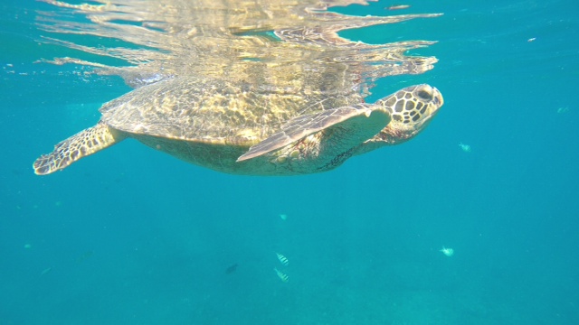 ウミガメさんもふわふわ息を吸いに水面に上がってきます。