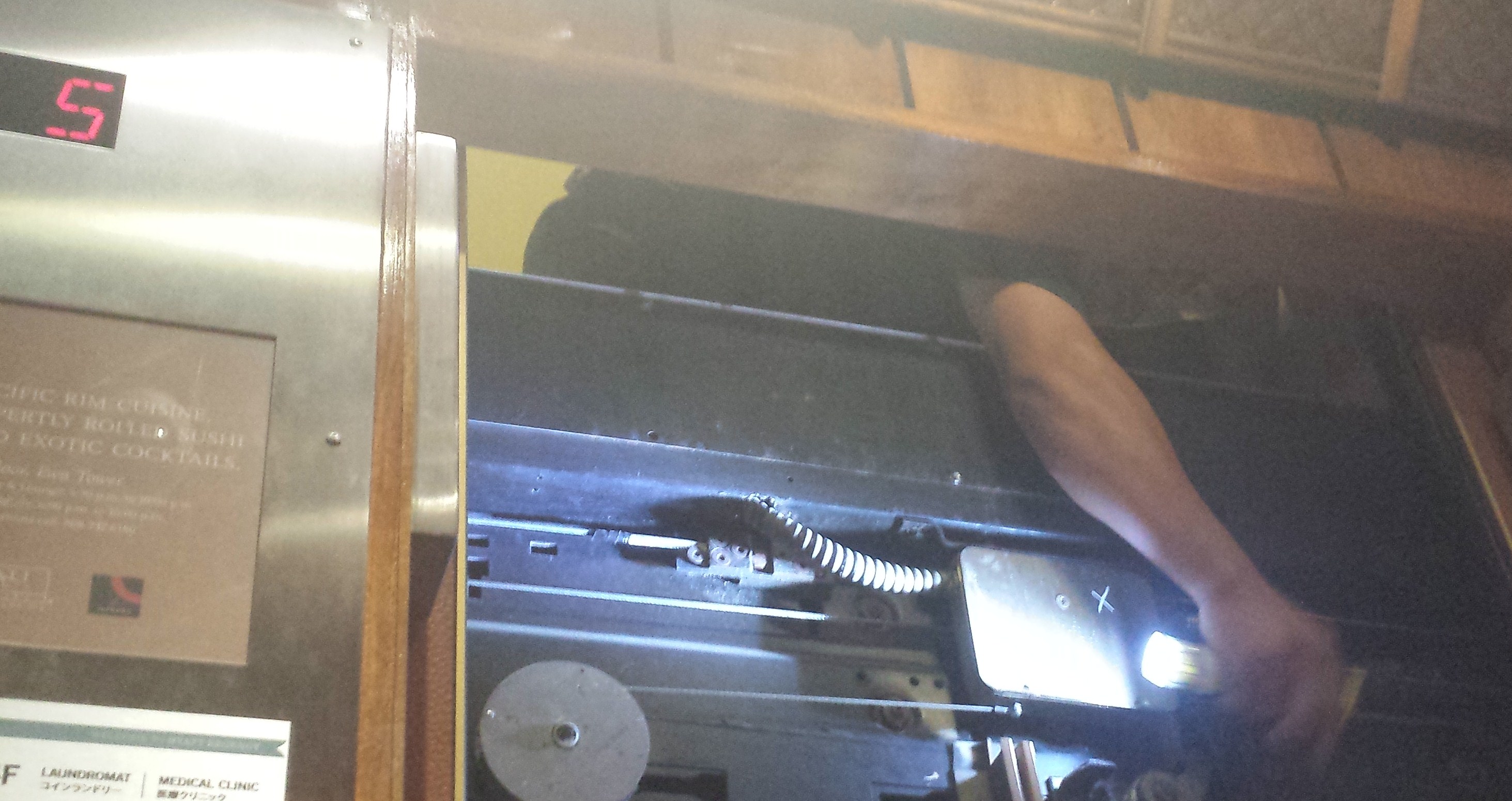 止まってしまいました。階数を示す数字は5階で止まったままなのですが、エレベーターは上がったり