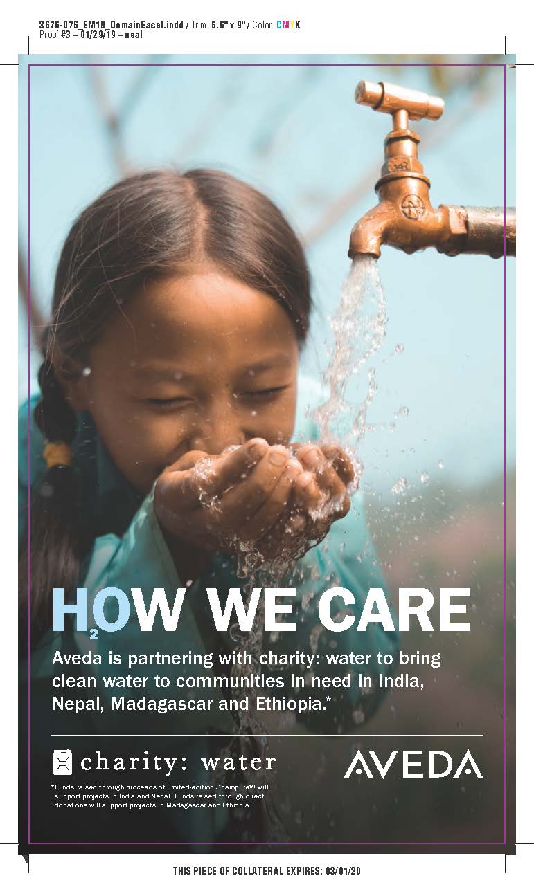 今年もさらにその活動を広げていき、募金活動を通じてインドやネパールの人々にきれいな水を届ける団体「charity:water」とパートナーシップを組み、アヴェダの原料調達先でもあるインド、ネパール、マダガスカル、エチオピアの人々にきれいな水を届けます。