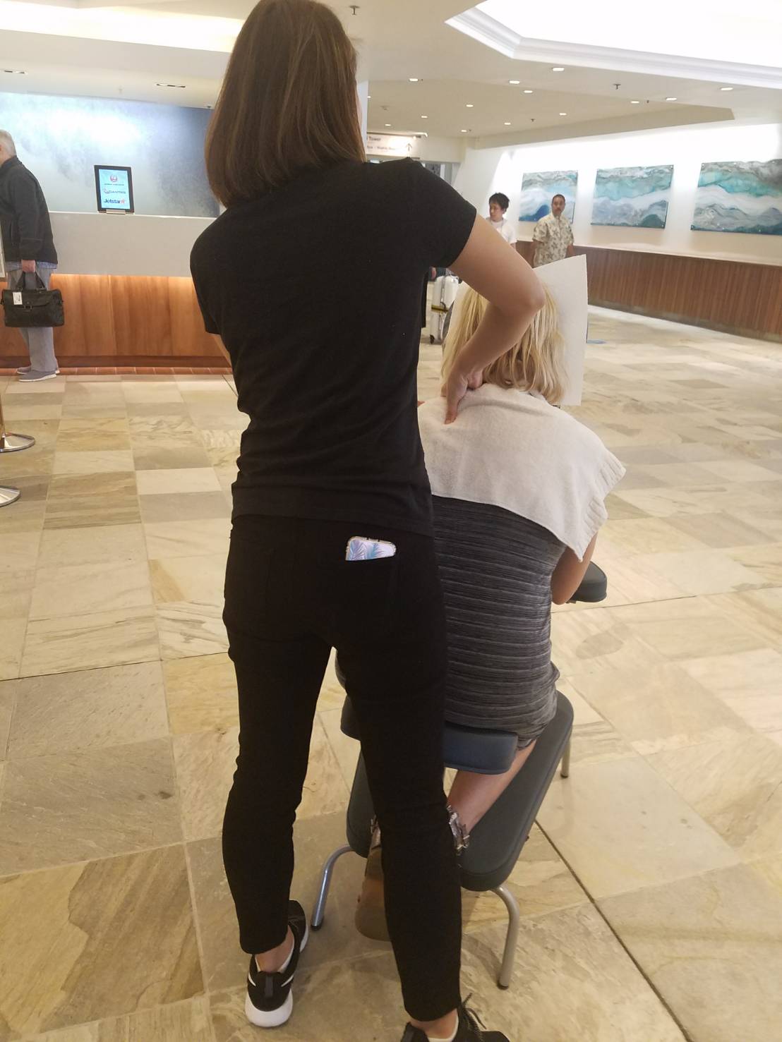 1階の フロント前で毎日 2時か3時で5分間のチェアーマッサージをしています