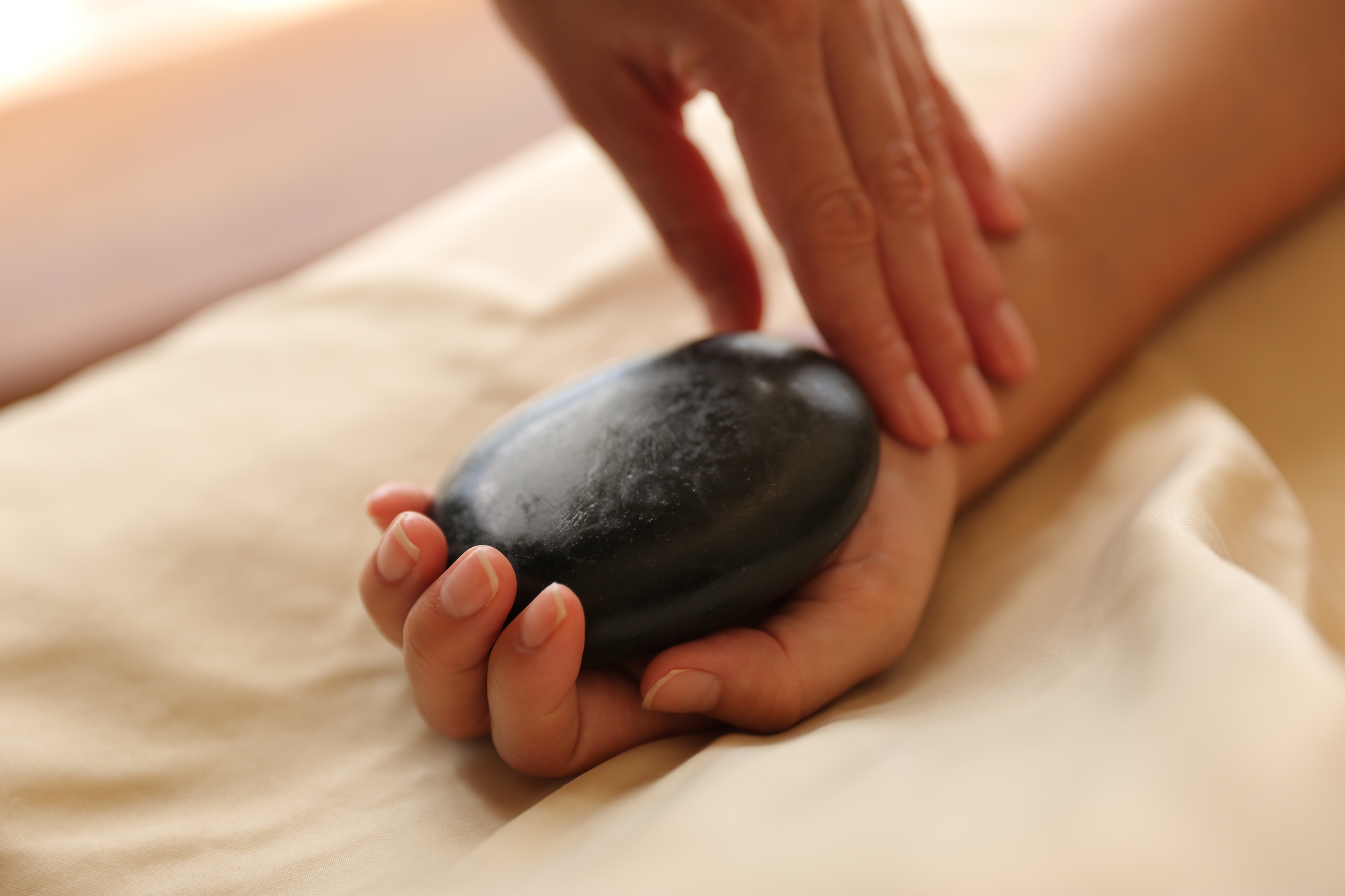 温かい石が身体の奥まで温め、硬直した腰、肩の筋肉も暖まりながら凝りがほぐれて行きます。